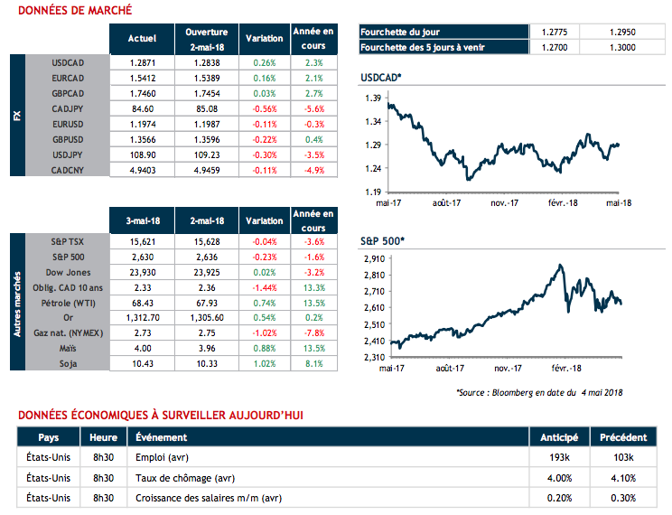 Les investisseurs sont en attente des données sur la création d'emplois aux États-Unis pour le mois d'avril. Les économistes sondés s'attendent à une création de 193,000 nouveaux postes après le faible gain de 103k le mois dernier.