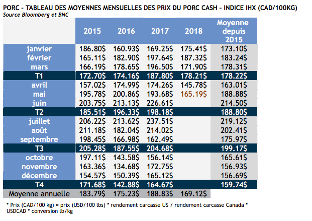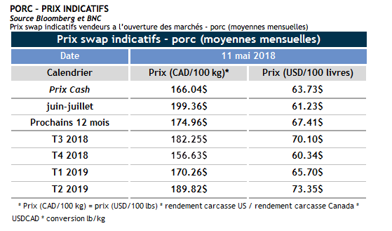 - Le USDA a modifié quelques données dans le rapport de production des viandes. En fait, il est intéressant de noter la diminution de la quantité de viande prévue en 2018. Tous les animaux (Bœuf, porcs et volailles) ont subi une diminution de production dans la publication du rapport de mai versus les attentes de l’organisme durant le mois d’avril. Il est intéressant que cela survienne à la veille du pic de consommation estivale. La compétition entre les viandes devrait aider les prix à remonter un peu dans les prochains jours. Pour 2019, le USDA demeure très positif pour la croissance de la production (accroissement du poids moyen et hausse de productivité anticipés).
