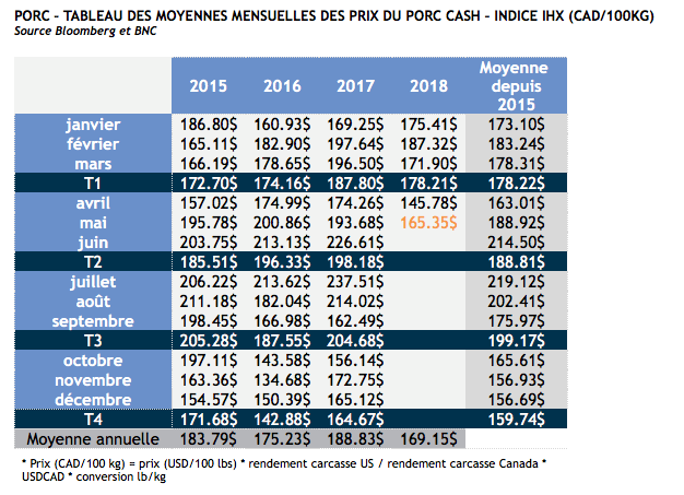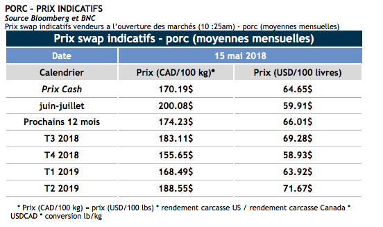 - La découpe et la demande des consommateurs semblent fortes. A l’opposée, le rythme des abattages proposent plutôt une offre abondantes des animaux (459 000 têtes versus 440 000 l’an dernier). L’écart de prix entre le prix au comptant (Lean Hog Index) et le prix du contrat de juin demeure relativement large pour cette période de l’année.