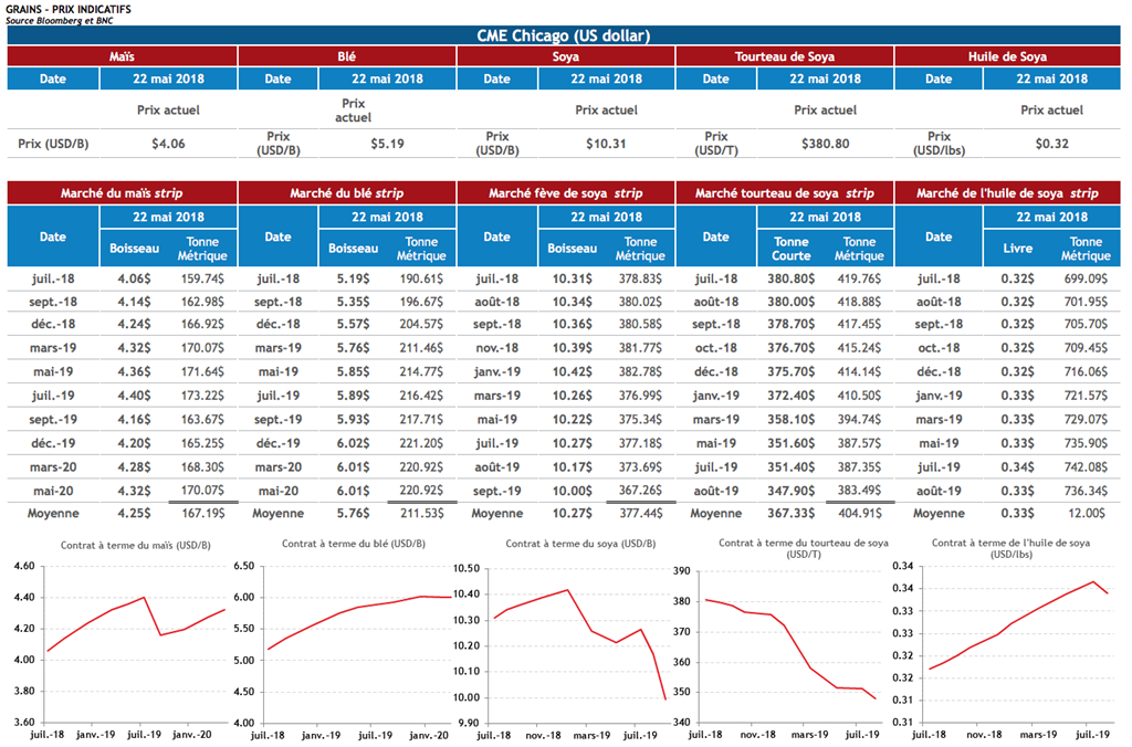 - Les nouvelles furent positives concernant le grain au cours du weekend puisque les États-Unis et la Chine ont conclu une entente pour travailler étroitement afin empêcher des litiges commerciaux futurs. Certains pensent maintenant que la Chine pourrait importer de grandes quantités de fèves de soya cet été, ainsi que du maïs et de l’éthanol américain.