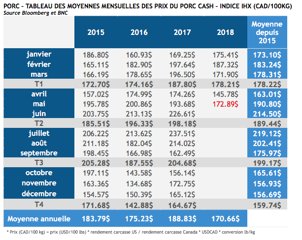 - Dans le commentaire d’hier, on discutait des chaleurs qui pouvaient perturber les gains de poids des porcs. Le USDA rapportait hier que le poids moyen des porcs destinés à l’abattage se chiffrait à 282,4 livres (semaine du 26 mai) versus 283,9 livres la semaine précédente. Le poids moyen en 2017 était de 280,8 livres.