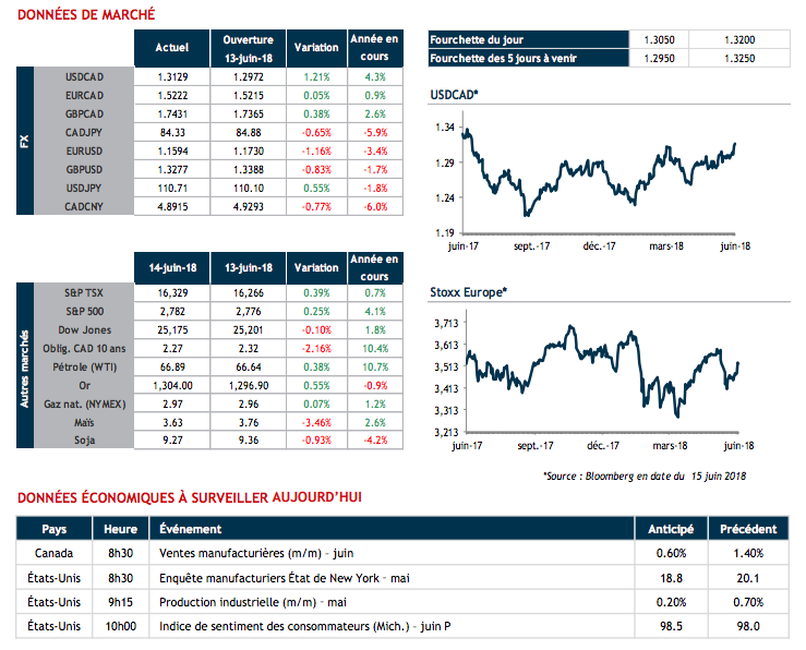 En l’absence de nouvelles économiques canadiennes ou de développement positif sur l’ALÉNA, le CAD a aussi beaucoup baissé en brisant plusieurs niveaux de résistance. Cette chute pourrait se poursuivre si les nouvelles américaines du jour (confiance des ménages…) continuent d’être fortes.