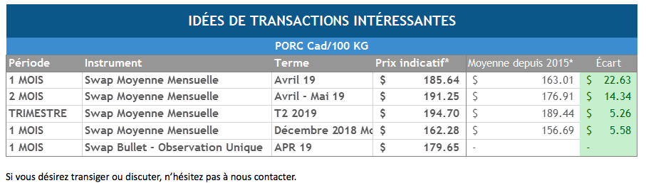 Les prix du porc ont fortement progressé vers les sommets saisonniers récemment. Conjugué à cette hausse des prix du porc, la valeur de la devise canadienne a chuté vers les creux des derniers mois. La combinaison fait en sorte que les producteurs de porcs de la province reçoivent des prix en CAD/100 kg intéressants.