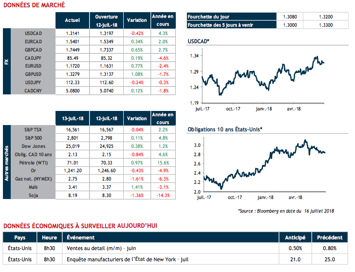 Ce matin, pendant que nos amis Français continuent de célébrer leur conquête de la Coupe du monde, l’euro affiche des gains (coïncidence?) et le dollar canadien est plutôt stable.