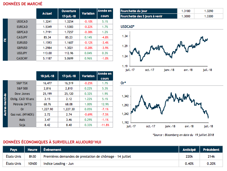 Surprise au niveau des négociations de l’ALÉNA : l’administration américaine a indiqué se rapprocher d’une entente… bilatérale avec le Mexique! Soulignons que le gouvernement américain désire tenir des discussions distinctes avec le Canada. Après la nouvelle, le MXN et le CAD ont gagné face au billet vert.