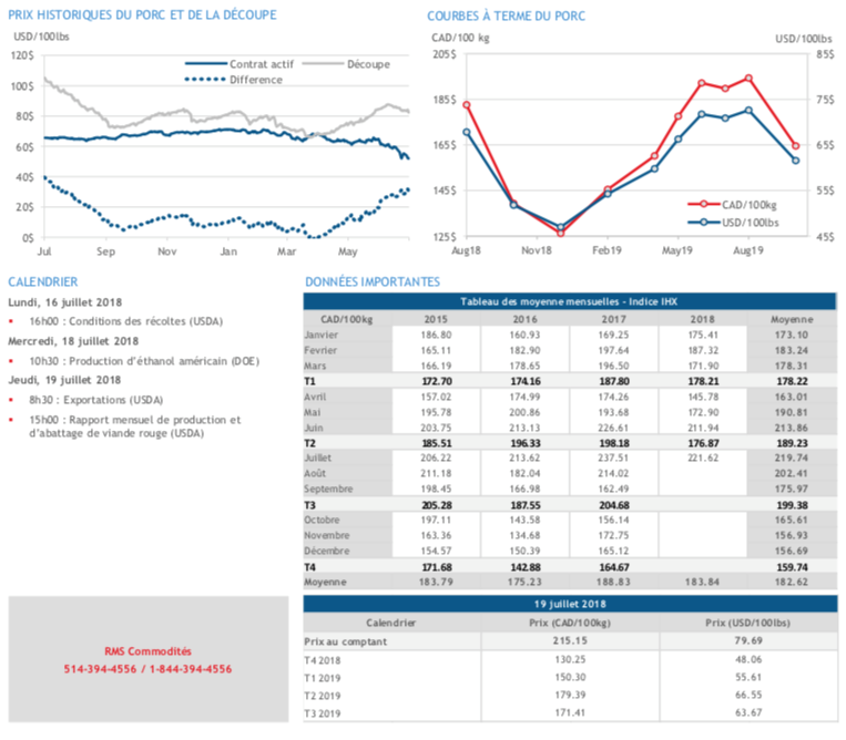 - Les prix au comptant et de la découpe n’aident en rien la marché à terme actuellement. La découpe a clôturé à 81.29 USD hier, en baisse de 1.95 USD par rapport à mardi. Il s’agit du prix le plus bas depuis le 14 juin.