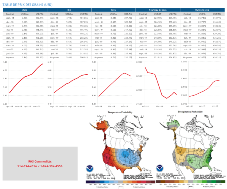 - Le marché demeure sceptique par rapport à la possibilité de rendement records. La forte chaleur dans le Midwest laisse entrevoir des enjeux pour la fin de la période de pollinisation.