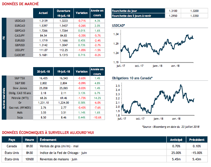 On note aussi une volonté de l’administration américaine de remettre en marche les négociations sur l’ALÉNA. Le secrétaire au Trésor, M. Mnuchin a évoqué dimanche de nouvelles négociations dans un futur proche. Ajoutons à cela les dernières déclarations de M. Trump sur la force du dollar américain qui désavantage les États-Unis. Enfin, si le USDCAD devait clôturer sous 1.3125 de façon nette, on pourrait alors assister, peut-être pas à un tournant (changement de tendance), mais au moins à une correction vers 1.3000.