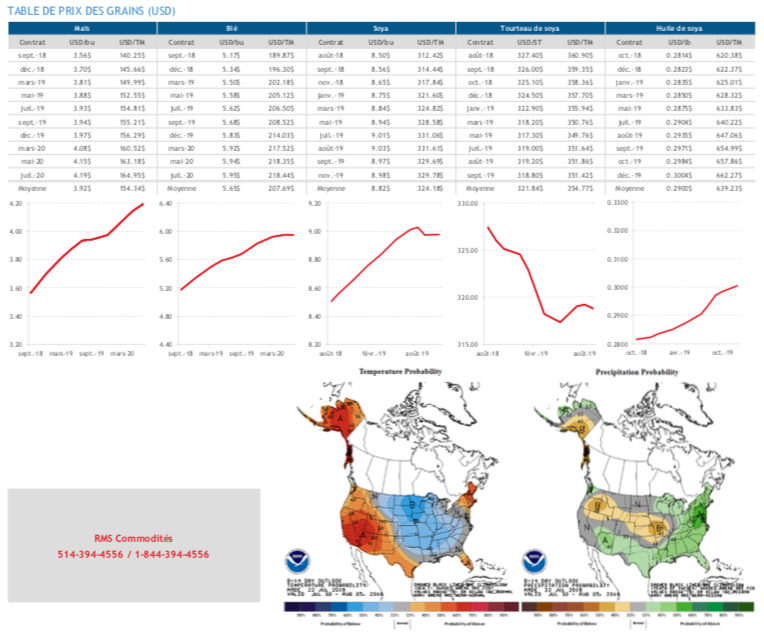 - La pluie du weekend dans le Midwest devrait aider la région à récupérer du temps sec des derniers jours et la météo devrait continuer d’être favorable dans les prochaines semaines.