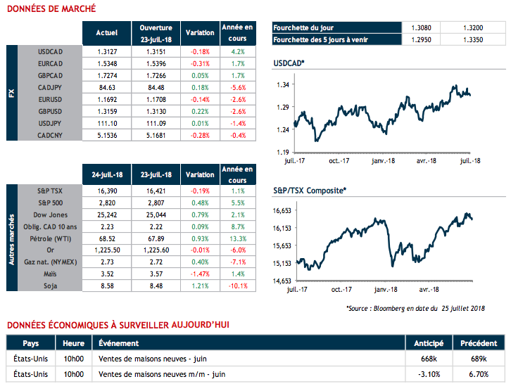 L’optimisme est palpable du côté mexicain. En effet, le président élu, Andrés Manuel Lopes, a désigné un nouveau conseiller responsable des négociations sur l’ALÉNA. Son nom est Jesus Seade et ses premières déclarations sont positives puisqu’il nous dit qu’un accord devrait être conclu au cours des prochains mois. Il se rendra, en compagnie de son ministre de l’économie, à Washington pour une rencontre avec son homologue américain, Robert Lighthizer. Les deux principaux points d’accrochage restent le pourcentage des pièces américaines dans l’industrie automobile et la clause crépusculaire (renégociations tous les 5 ans). L’administration Trump semble appuyer un accord bilatéral Mexique–États-Unis, tandis que le Mexique prône une entente trilatérale incluant le Canada. La devise mexicaine s’est légèrement appréciée depuis lundi.
