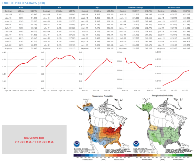 - La chaleur des dernières semaines continue d’alimenter les craintes par rapport à la qualité des récoltes. La température devrait demeurer élevée, mais des précipitations sont à prévoir, ce qui devrait limiter les dégâts.
