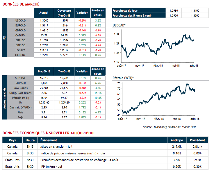 Aujourd’hui, nous surveillerons les mises en chantier au Canada et l’indice des prix à la production aux États-Unis.
