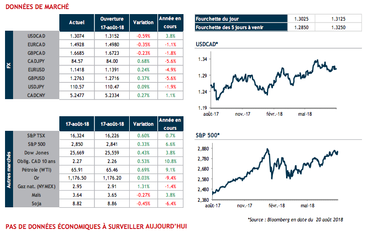 Nous avons vu vendredi dernier notre devise grimper devant l’annonce de pressions inflationnistes à la hausse. Bien qu’il soit vrai qu’à 3.0%, l’indice global affiche son plus haut niveau depuis 2011, il ne faut pas perdre de vue que celui suivi par la Banque du Canada se situe en fait à 2%. Il y a fort à parier que c’est ce constat qui a fait passer de 92% au moment de l’annonce à 72% aujourd’hui les probabilités d’un resserrement monétaire en octobre prochain.
