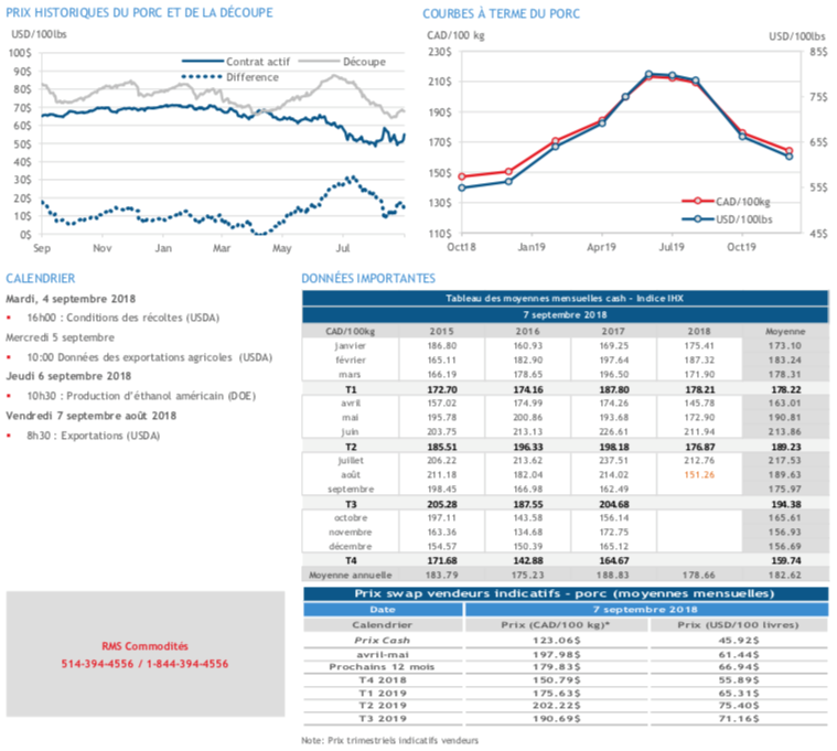 - Le prix au comptant commence à reprendre de l’altitude depuis mercredi. L’indice est à la hausse de 0.25 USD à 45.92 USD / 100 livres.