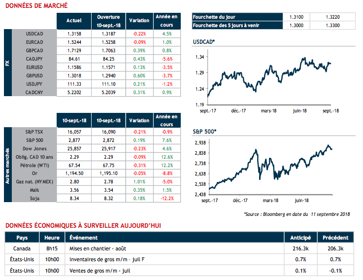 Aujourd’hui, nous surveillerons les mises en chantier canadiennes en août ainsi que les ventes et inventaires de gros aux États-Unis.