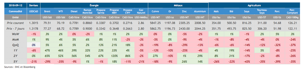 - Les contrats de décembre 2018 continuent d'être très élevé par rapport au prix au comptant, à prime de 9.87 USD. Selon la moyenne historique des cinq dernières années, le contrat de décembre se transige plutôt habituellement à escompte de 10.28 USD par rapport au prix au comptant.