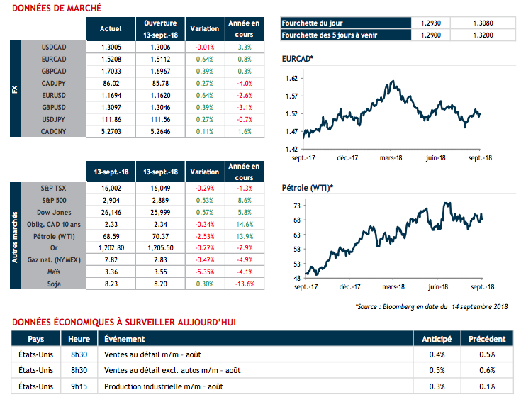 Aux États-Unis, l’inflation a ralenti en août à un rythme annualisé de 2,7 % comparativement à 2,9 % le mois précédent. Malgré cela, la paire USDCAD est restée stable.