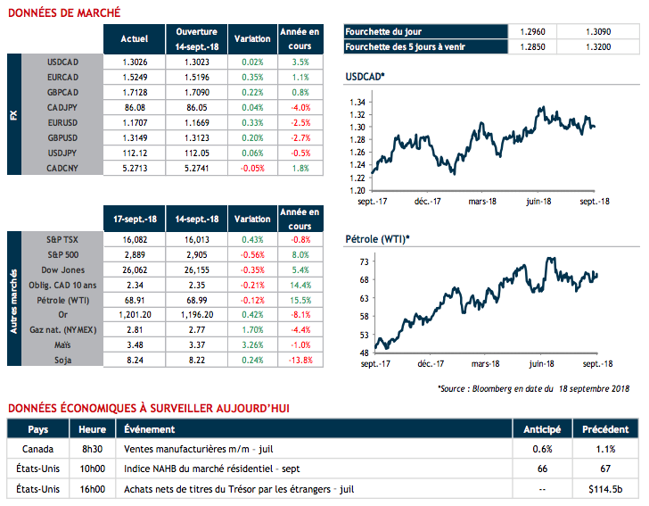 Le dollar canadien est stable ce matin alors que le prix du pétrole brut (WTI) enregistre des gains et se rapproche de la barre psychologique de 70$. Bonne journée ! Emmanuel Tessier-Fleury