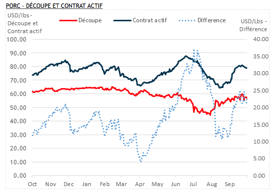 - Le prix de la découpe fait du surplace depuis 1 semaine à $79.06 USD /100 livres.