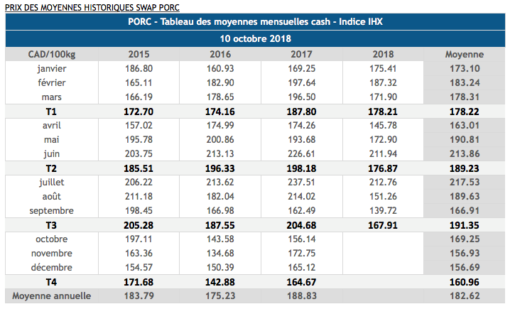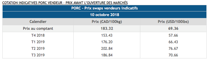 Voici les cotations indicatives et les dernières nouvelles sur les marchés du porc et des grains: