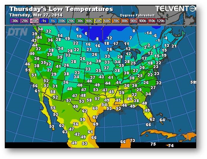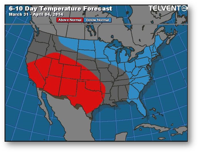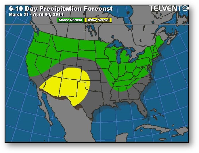 Les intentions d’ensemencement seront à surveiller dans le rapport de lundi, mais elles reflèteront la situation en date du 1er mars; les conditions météo n’ont pas vraiment collaboré depuis et le départ est plus lent qu’à l’habitude. Informa a publié sa prévision de 93 millions d’acres, ce qui est légèrement supérieur à la moyenne estimée par le marché. L’évaluation de l’évolution des semis rapportée hier indique que plusieurs des États du sud sont en retard sur le rythme moyen des cinq dernières années. Au cours des quelques prochains semaines, on pourrait voir un réchauffement du sol dans le sud mais un maintien du froid dans le Midwest.