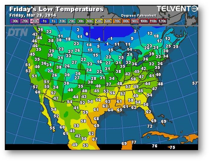 Prévisions des températures les plus basses (degrés Farenheit)