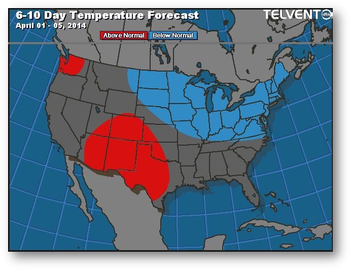 Prévisions de températures pour les 6 à 10 prochains jours