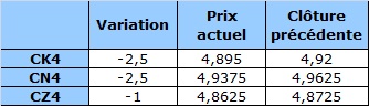 Contrat à terme du maïs à 6 h HAC : en baisse
