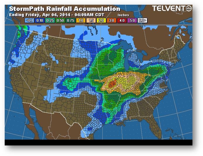 Trajectoire de tempête – Accumulation de précipitations (pouces)