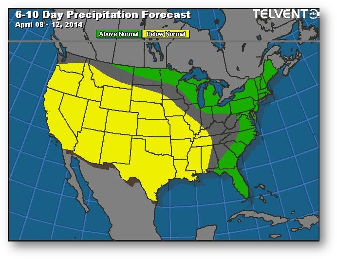 Prévisions de précipitations pour les 6 à 10 prochains jours