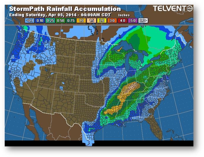 Trajectoire de tempête – Accumulation de précipitations (pouces)