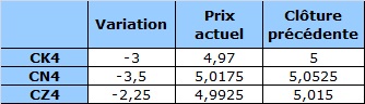 Contrat à terme du maïs à 6 h HAC : en baisse