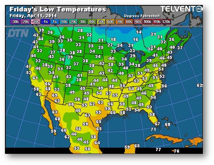 Prévisions des températures les plus basses (degrés Farenheit)