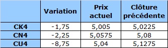 Contrat à terme du maïs à 6 h HAC : en baisse