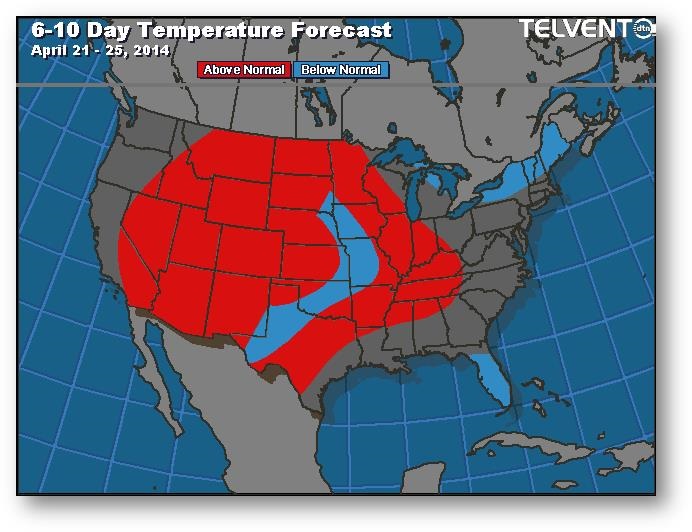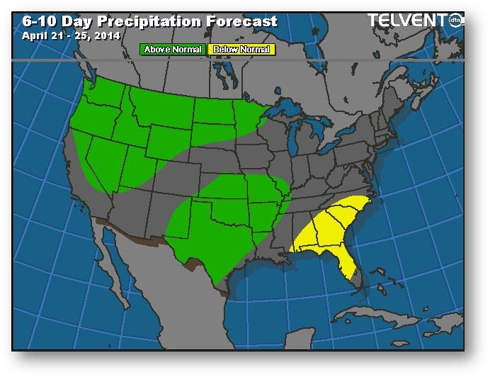 Côté météo, les prévisions pour les 7 à 10 prochains jours laissent croire que les agriculteurs auront l'occasion d'avancer les semis dans la grande majorité du Midwest. De façon générale, les conditions devraient aller en s'améliorant, ce qui pourrait jouer sur les prix du maïs.
