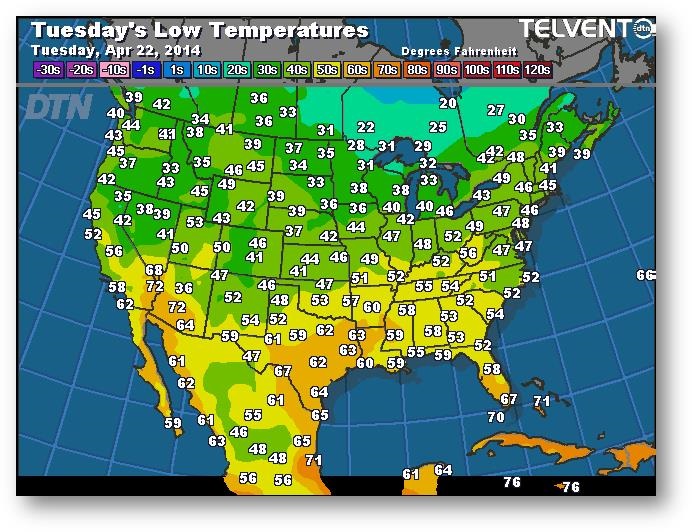 Prévisions des températures les plus basses (degrés Farenheit)
