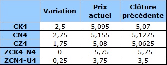 Contrat à terme du maïs à 6 h HAC : en hausse