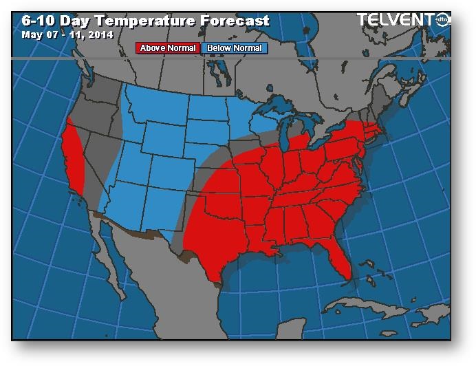 Du côté des prévisions météo, entre 65 et 70% du Midwest devrait recevoir moins de 25% des précipitations normales entre aujourd'hui et le 10 mai. Une semaine de temps sec permettra une bonne progression des semis. À l'échelle internationale, l'ensemencement se poursuit en Chine alors que la pluie freine un peu les agriculteurs dans le sud-est de l'Europe.