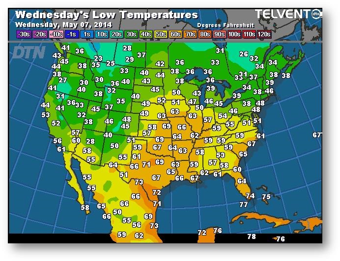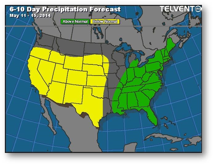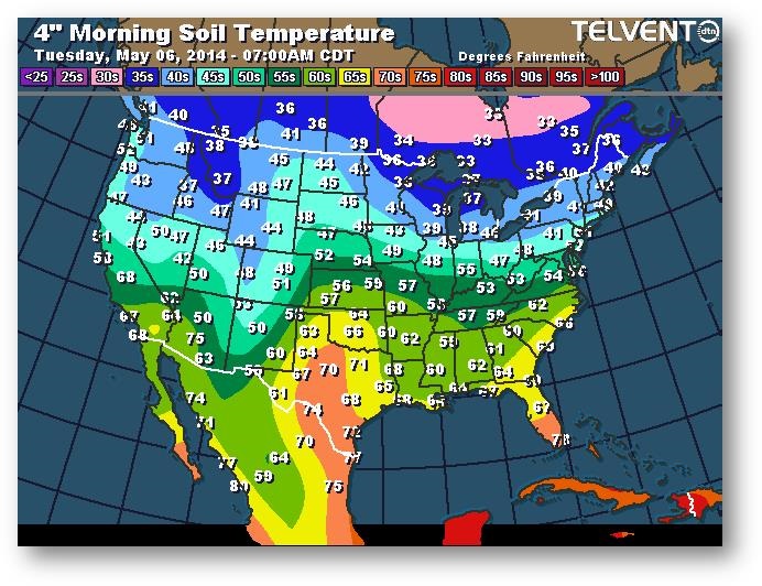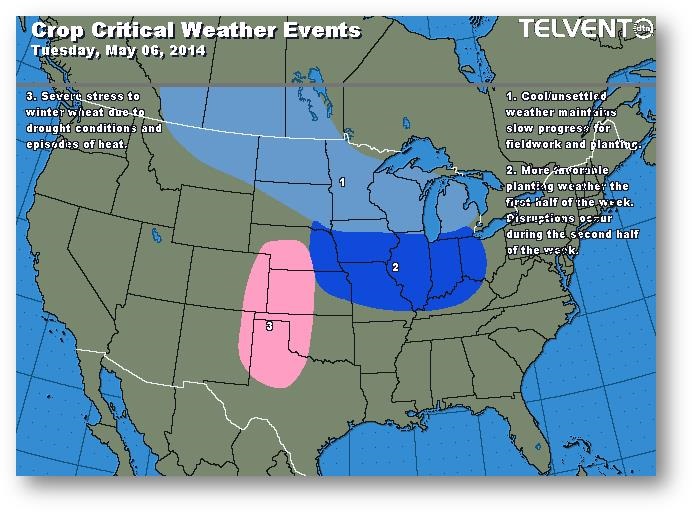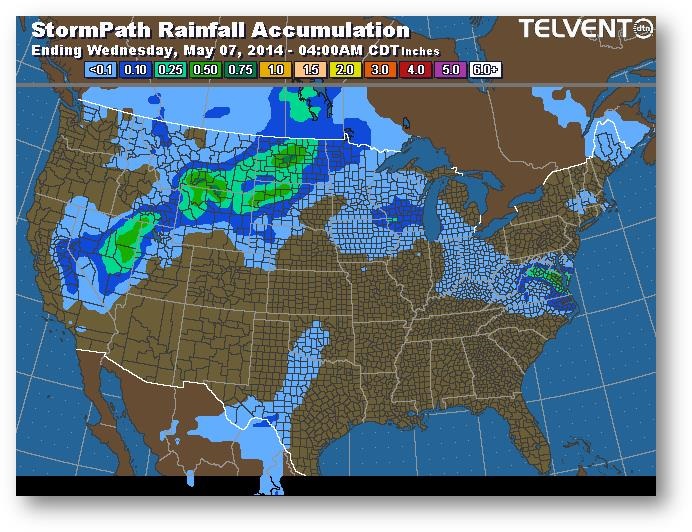 La progression des semis de maïs annoncée hier était de 29% comparativement à la moyenne des cinq dernières années de 42%. Le marché s'attendait à 30-35%, le résultat est donc considéré neutre. Les conditions météo devraient être optimales pour l'ensemencement dans la majeure partie de la Corn Belt d'ici la fin de la semaine. Les exportations de la semaine se terminant le 1er mai ont été élevées à 48,8 millions de boisseaux, ce qui est bien supérieur à la quantité hebdomadaire nécessaire lors des 17 prochaines semaines pour atteindre la prévision du USDA (1750). On s'attend à ce que le USDA revoit son estimation à la hausse.