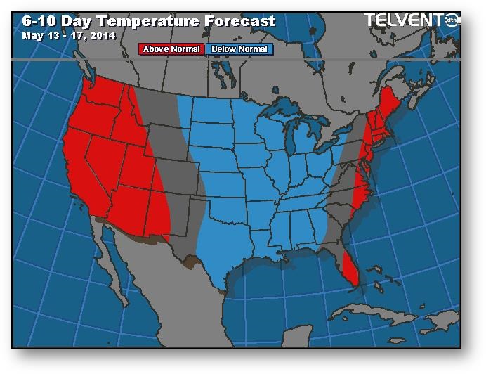 Prévisions de températures pour les 6 à 10 prochains jours
