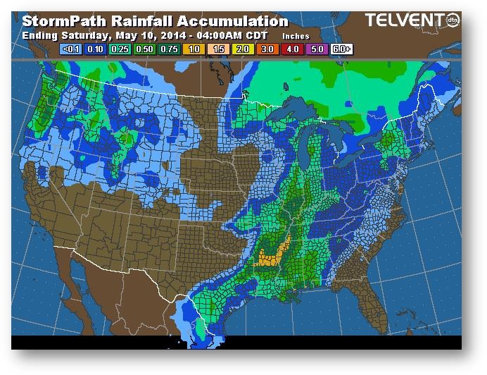 Trajectoire de tempête – Accumulation de précipitations (pouces)