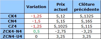 Contrat à terme du maïs à 6 h HAC : en baisse