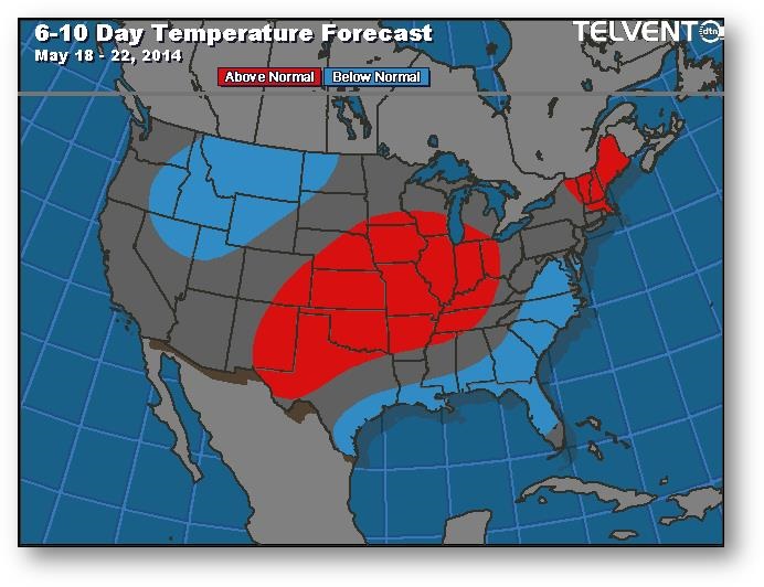 Prévisions de températures pour les 6 à 10 prochains jours