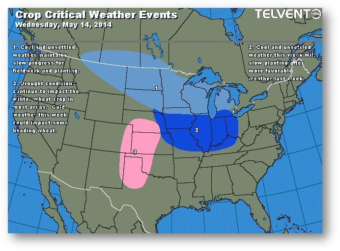Le marché semble préoccupé par les semis de la partie nord-ouest de la Corn Belt, mais certains croient qu'il ne faut y accorder trop d'importance. Les prix ne sont actuellement pas suffisamment élevés pour encourager les ventes des agriculteurs, occupés dans les champs. Sur le marché de l'exportation, le USDA a fait état de ventes de maïs américain de l'ancienne récolte à la Corée. Ce matin, la production d'éthanol annoncée devrait être supérieure aux données antérieures de 894 000-898 000 barils/jour.