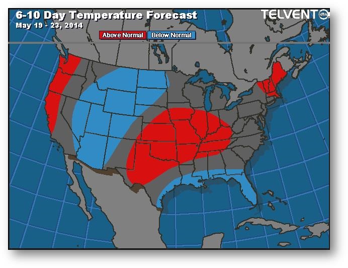 Prévisions de températures pour les 6 à 10 prochains jours