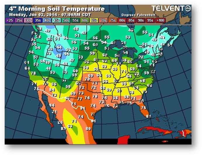 Température du sol en matinée à une profondeur de 4 pouces
