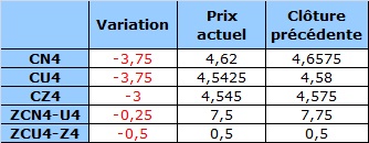 - Prix calculé en fonction du rapport 201 du CME hier :