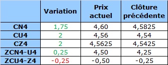 - Prix calculé en fonction du rapport 201 du CME hier :
