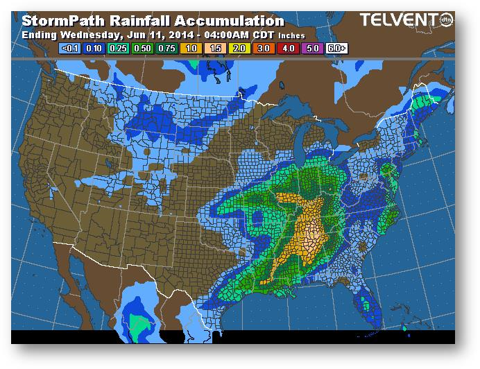Trajectoire de tempête – Accumulation de précipitations (pouces)