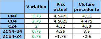 - Prix calculé en fonction du rapport 201 du CME hier :